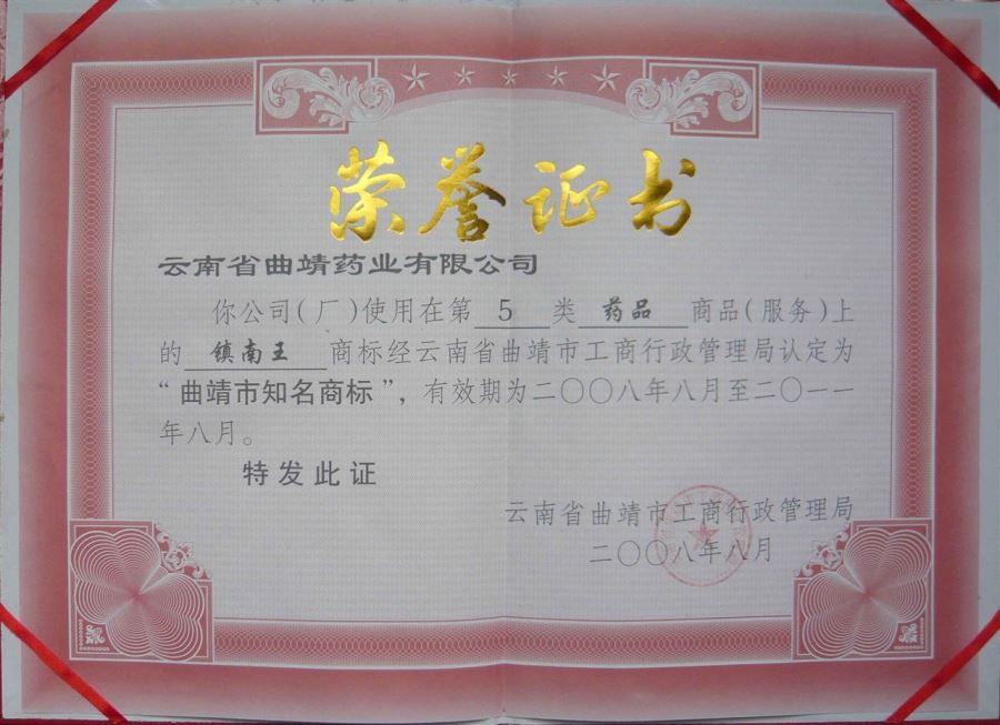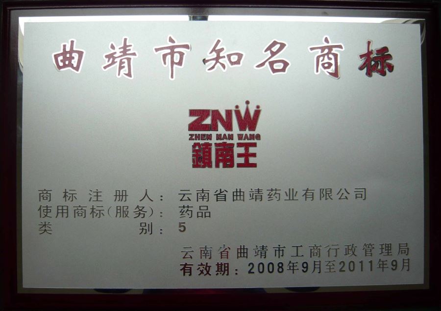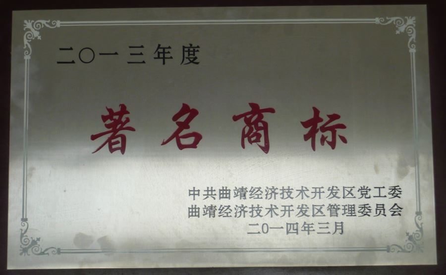 曲靖市知名商標獎牌
