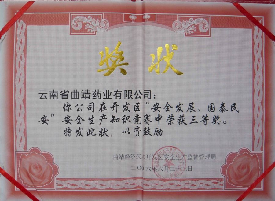 安全發(fā)展、國泰民安”知識競賽三等獎
